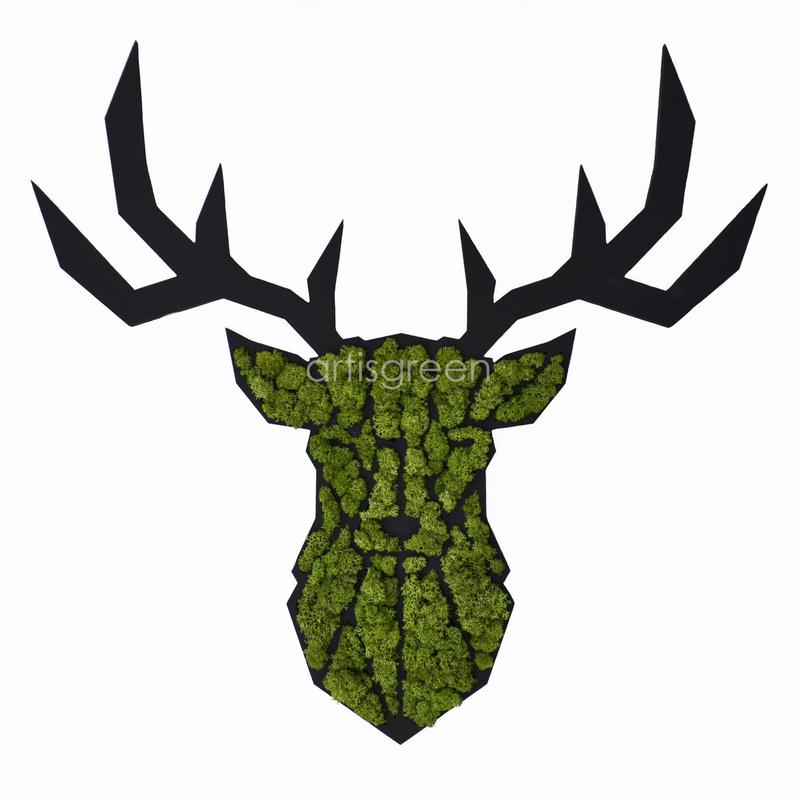 НАСТЕННЫЙ ДЕКОР СО СТАБИЛИЗИРОВАННЫМ МХОМ «ОЛЕНЬ» Настенная деревянная плитка с настоящими растениями и мхом, поможет гармонично украсить ваш интерьер и стать изюминкой вашего дома. Кроме того, такой декор действительно оригинальный вариант подарка для близких, коллег или партнеров. ### ПОЧЕМУ ИМЕННО ЭКО- ДЕКОР СО МХОМ? Корпус из дерева или мдф. Можно выбрать любой цвет покрытия корпуса. Стабилизированный скандинавский мох в 20-ти разных расцветках. Оригинальное дополнение к любому интерьеру. Отправляем по всей Украине. При доставке - прочная упаковка за наш счет. Важно отметить, что мох не имеет корней, поэтому он поглощает воду и питательные вещества из воздуха. Таким образом, он также поглощает загрязнение воздуха и углекислый газ, что улучшает качество воздуха в вашем помещении. ### ### И еще, несколько фактов о стабилизированном мхе: Мох не требует полива или освещения, что очень удобно. Мох остается свежим около 8-10 лет. Поэтому такой рождественский венок из мха будет радовать вас много лет. Мох вызывает эмоции! А это тот самый WOW-эффект, которого все стремятся добиться от подарков. Мох очень приятный и мягкий на ощупь, снимает стресс, вызывает желание прикоснуться к нему. То есть человек будет постоянно контактировать с вашим подарком, вспоминая о вас и вашей компании. В наличии в «АРТИС ГРИН» более 21 оттенков мха. Поэтому мы сможем подобрать скандинавский мох под вашу корпоративную цветовую гамму. Кроме того мы используем натуральные природные материалы, которые не вызывают аллергии! ОПИСАНИЕ ИЗДЕЛИЯ: Размер: высота - 60 см, ширина - 58,5 см, толщина основы - 8 мм. Материал основы - мдф с окраской в два слоя, матовое покрытие. Наполнение: стабилизированный скандинавский мох. Возможно выполнение в других размерах и цветах - на заказ. ###