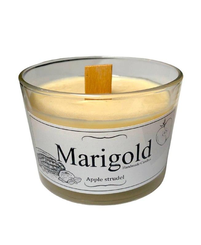 Соевая свеча с ароматом яблочного штруделя Marigold Свеча из натурального соевого воска Marigolg поможет создать неповторимый аромат вашего дома, чтобы прямо с порога ощущалось тепло и уют. Деревяний фитиль романтично потрескивает при горении, что способствует расслаблению после рабочего дня. Соевий воск изготовлен из масла соевых бобов. При сгорании, соевые свечи Marigold, как и свечи из натурального пчелиного воска, не коптят, дают ровное пламя и не выделяют канцерогены. Соевый воск можно использовать как крем для тела, отлично увлажняет кожу. Можно не бояться, так как он полностью натурален. Так же используется как массажное масло, так как температура плавления низкая. Время горения — 20-25 часов. Аромат довольно стойкий и сохранится до самого утра. Также можно использовать открытую свечу как сухой аромадиффузор. Рекомендации по использованию: не тушите свечу, пока вся поверхность не растопится; растапливайте воск не больше, чем на 1 см; свеча должна прогорать равномерно, чтобы не оставалось «стенок»; воск легко удаляется с любой поверхности водой или спиртовым раствором. Объем: 120 мл Соевый воск в наших свечах производства США