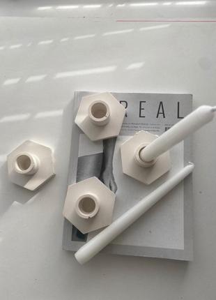 Подсвечники из гипса для высоких свечей. Украсят ваш интерьер. Размеры ширина 9.2 см , высота 4 см . Цена за 1 шт цвета: белый Цвет изделия может немного отличаться от фото