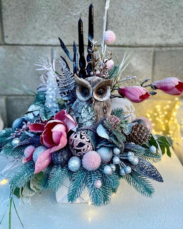 Рождественская композиция со сушкой🦉, светодиодной на батарейках елочкой🎄, нашикарные черные две свечи 🕯️🕯️...все эта сказочная красота собрана в керамическом белом кашпо с стразами!!!💥 Иногда хватит одной композиции, чтобы сделать Ваш интерьер по особому новогоднему, настроение-гарному!😍