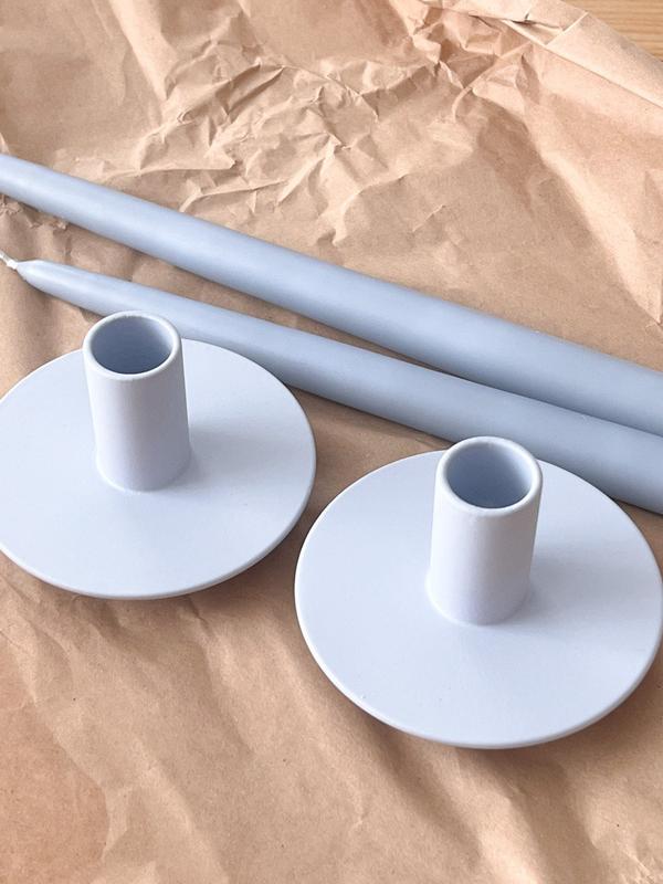 Свічник матовий Діаметр: 9,5 см Висота: 6 см Колір: світло-сірий/голубий Матеріал: 100% алюміній Ціна вказана за набір, окремо можна докупити свічки в голубому кольорі (90грн.-2шт.)