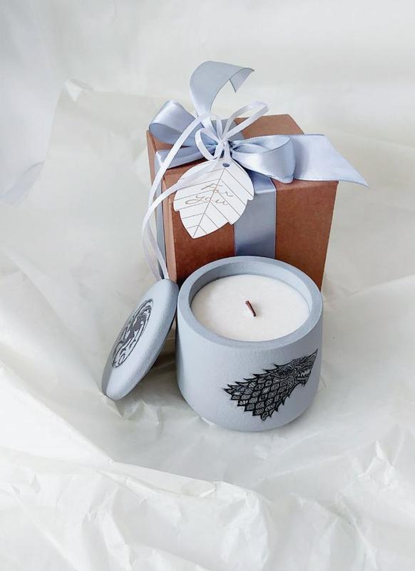 Соєва свічка з кришкою ручної роботи у подарунковій коробці "game of thrones"