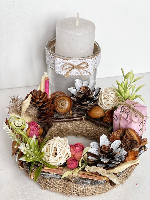 Очень нежный и оригинальный подсвечник в стиле прованс. Ручная работа. В 1 экз. В комплекте- украшен стеклянный подсвечник, венчик и свеча. Диаметр венчика 16 см. Не занимает много места. + упаковка в подарочную коробку. Пересилаю. Спрашивайте 🙌