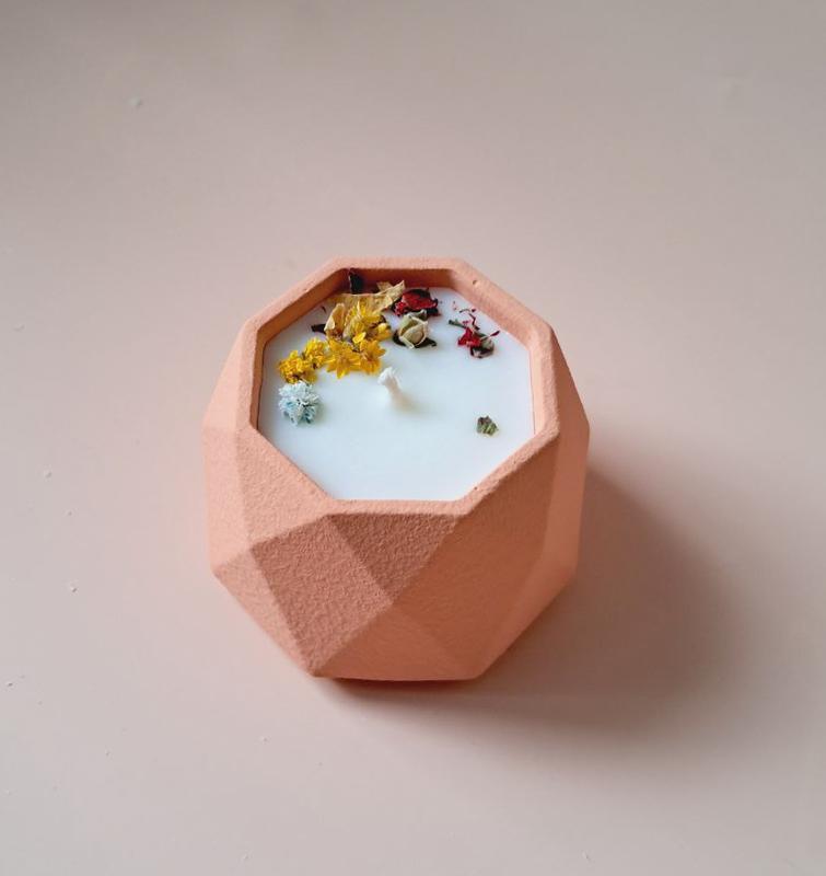 Свеча ручной работы персиковый цвет
