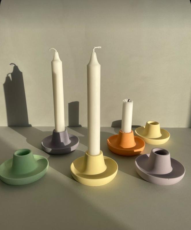 Подсвечники из гипса для высоких свечей. Украсят ваш интерьер. Размеры ширина 8.8 см , высота 4.8 см цвета: жёлтый, оранжевый, зелёный, фиолетовый цена за 1 шт Цвет изделия может немного отличаться от фото