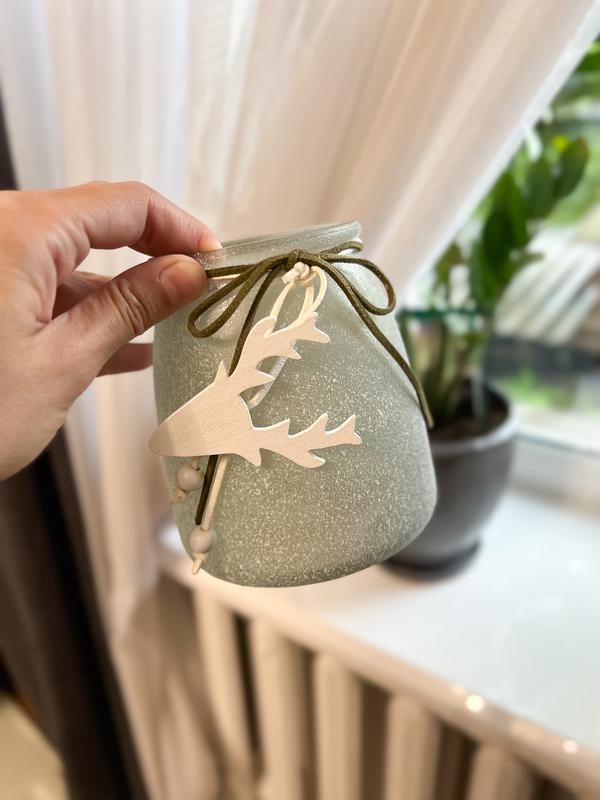 Підсвічник скляний, дизайн новорічний : покритий штучним снігом, висота 12см, не використовувався.