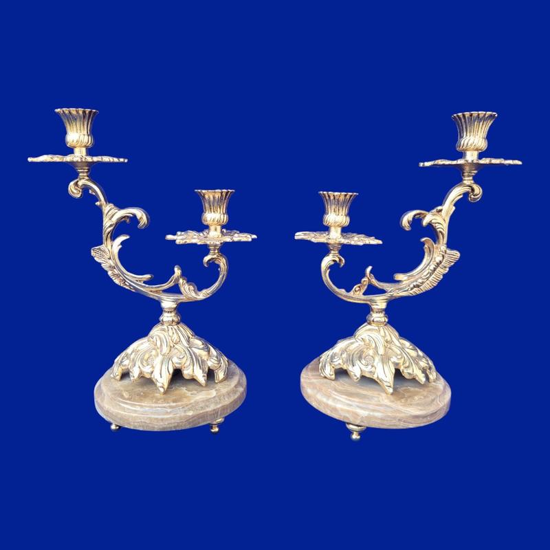 Бронзовые подсвечники с мрамором по 2 свечи арт. 0798