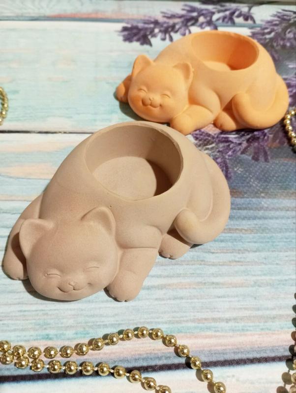 Милые котики- подсвечники из гипса. Под свечку- таблетку. Ручная работа.