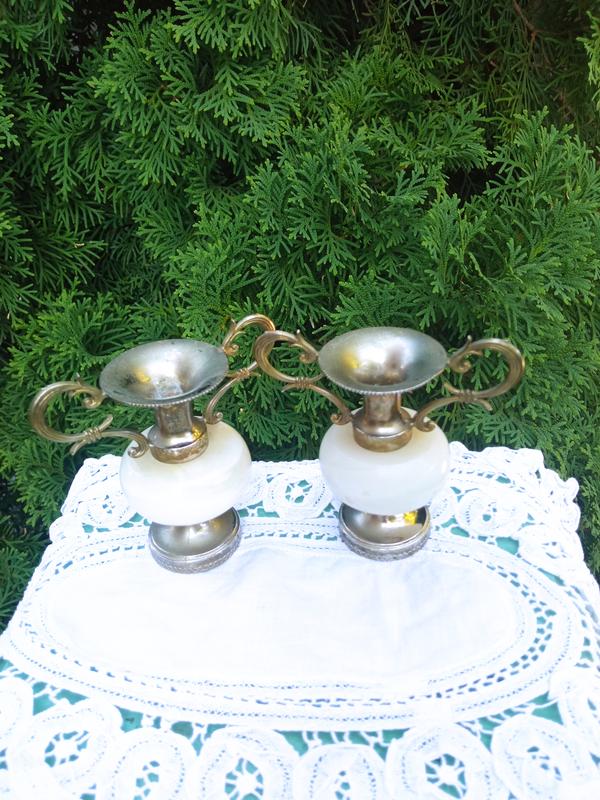 Продам две винтажные вазы подсвечники из оникса.сдедано в италии