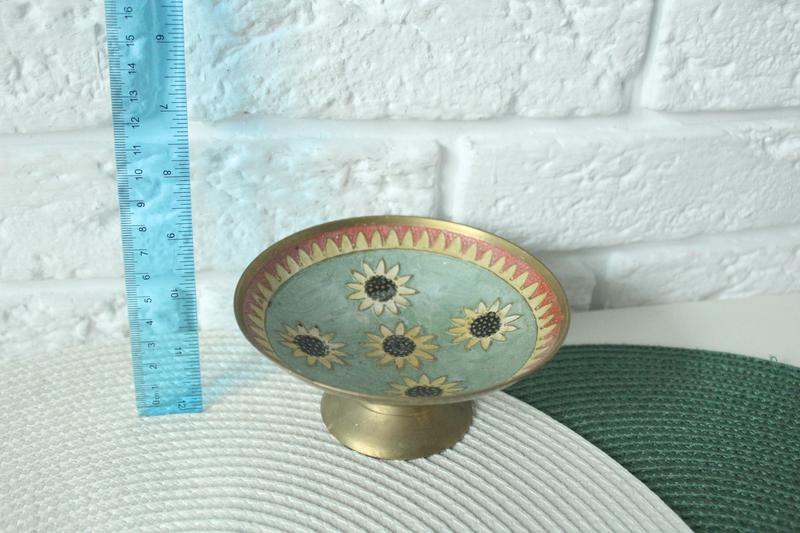 Вінтажне латунне металеве блюдо, зелена емаль і латунь