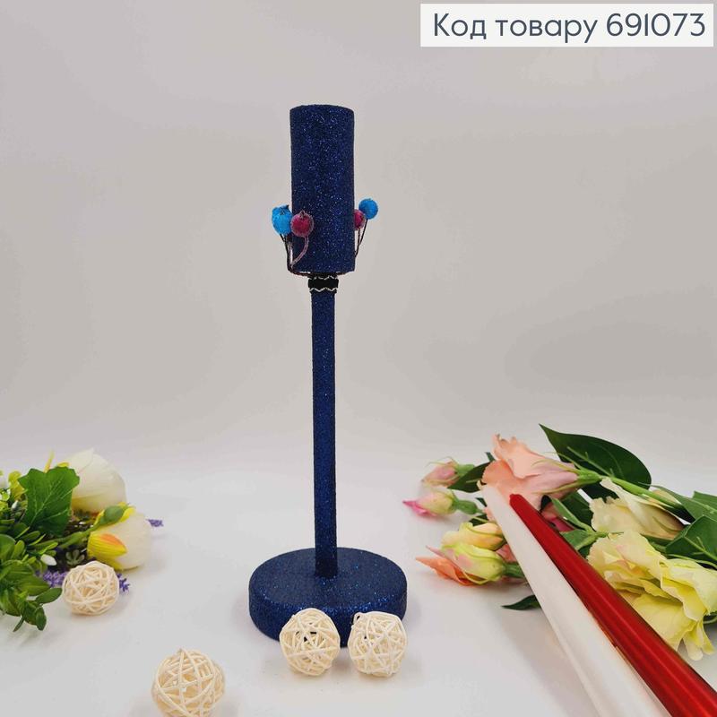 Підсвічник дерев'яний, блиск синього кольору, декорований ягодами, висота 28см, підставка...