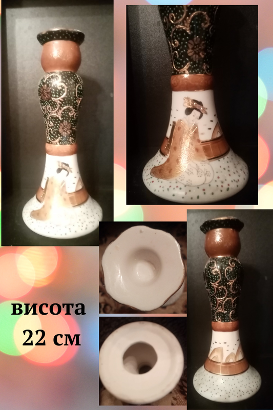 Подсвечник фарфоровый на одну свечу высотой 22 см с рисунком на японскую тематику. отправка Укр и Новая почта. Оплата - по договоренности: на карточку, после платья, безопасное предприятие