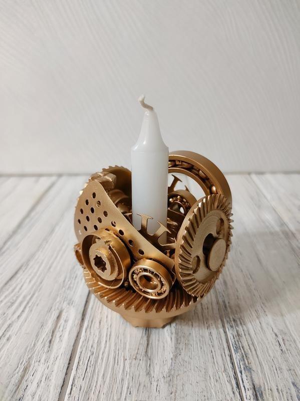 Сувенир подсвечник стимпанк из металла с золотым напылением ручная работа хенд мейд подаро...