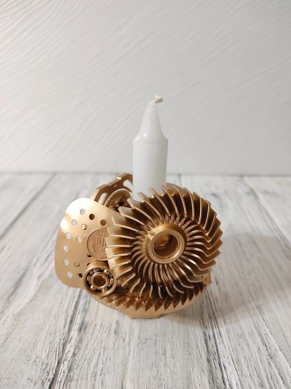 Сувенир подсвечник стимпанк из металла с золотым напылением ручная работа хенд мейд подаро...