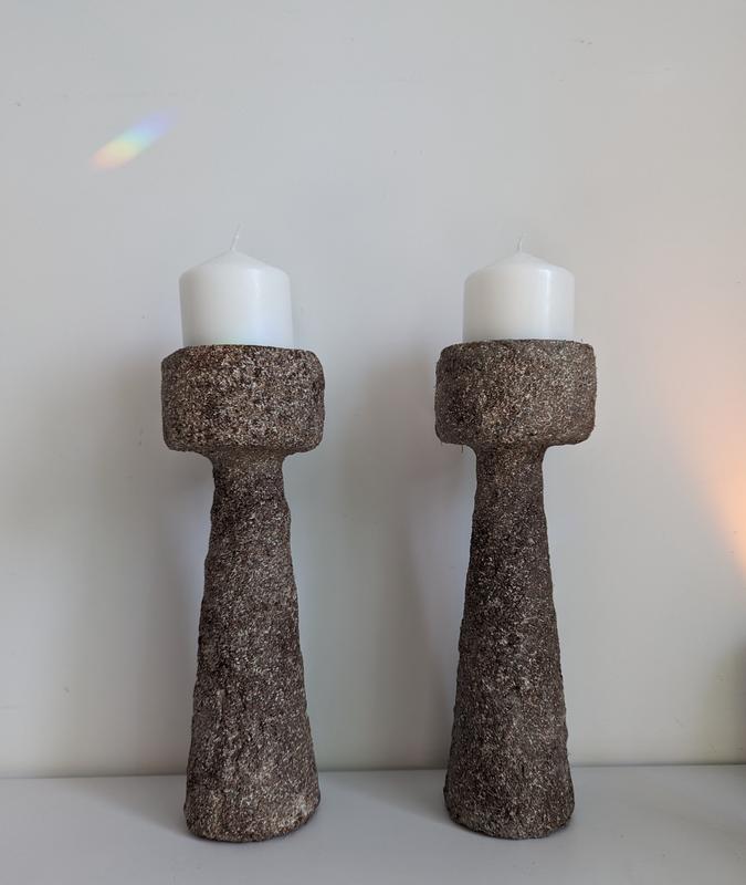 Подсвечники интерьерные стилизованы под красный гранит. Handmade . Материал: влагостойкий папье-маше, кокосовое волокно,сухая шпаклевка,акриловая краска, лак. Замеры: h 29 см,d свечи 6-7 см цена за Сахар без свечи 400 грн (веча +100 грн)