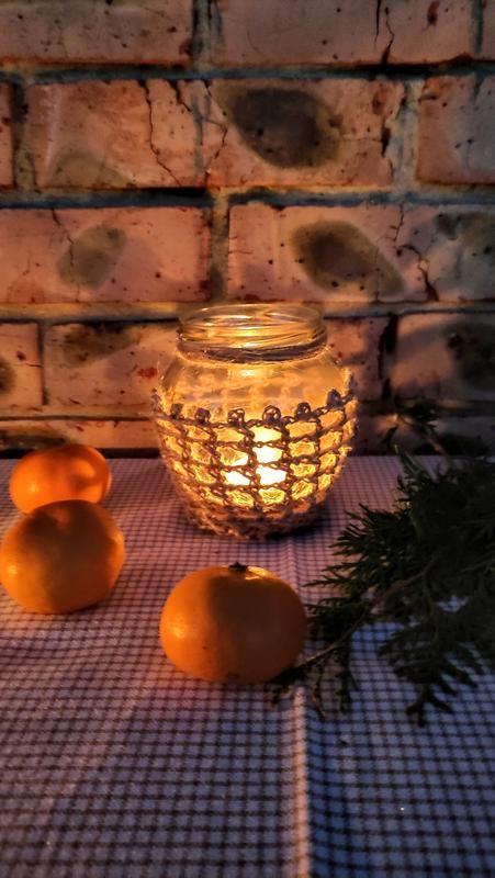 Підсвічник в'язаний гачком із натурального джуту. Чохол + скляна банка, об'ємом 10,5л.утворюють функціональний декор, який вдень виконує роль вази, а ввечері, за допомогою чайних свічок - роль ліхтарика. Виконаємо на замовлення за вашими розмірами 🤗. Дополнительные характеристики: Материал : Стекло