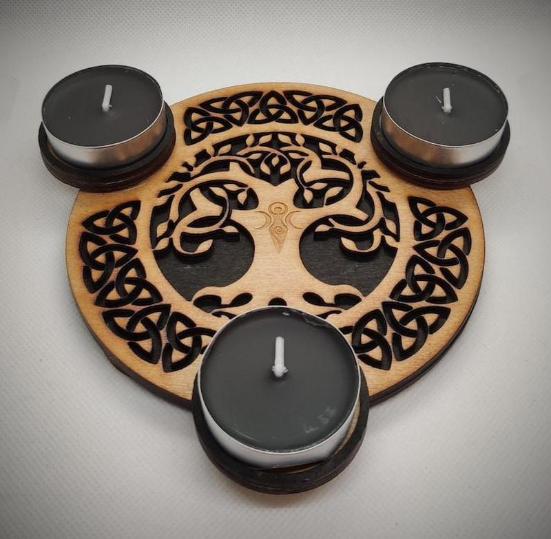 Деревянный подсвечник для чайных свечей с гравировкой "Дерево жизни". Прекрасный функциональный елемент декора. Диаметр-160mlm
