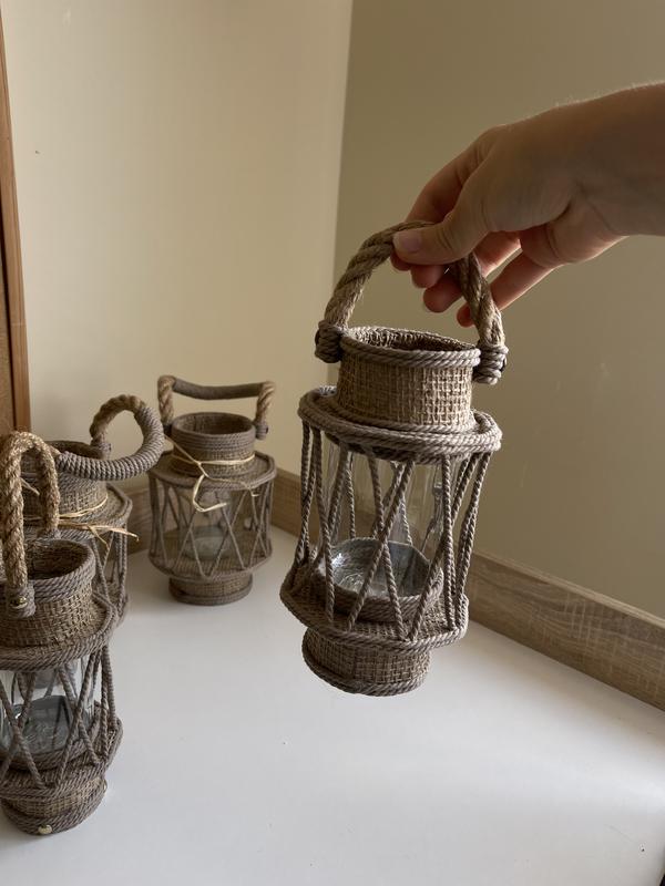Фонарь ручной работы. Эко материалы. Внутри фонарика – банка, в которую можно положить гирлянду, или свечу. РАЗМЕРЫ: Размер S: высота - 26 см, ширина - 10 см. Размер М: высота - 32 см; ширина - 15 см. *Включая ручку и выступающие элементы.