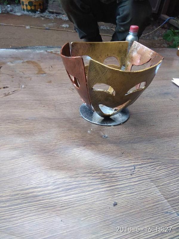 Собственноручно кованый подсвечник в виде четырех театральных масок