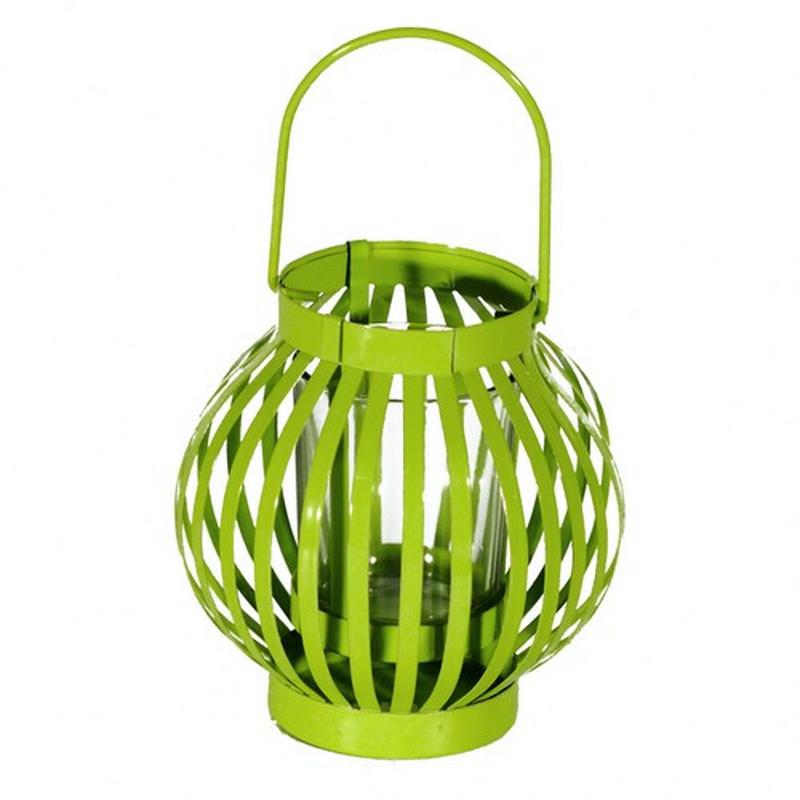 Подсвечник фонарик салатовый с стеклянной колбой 11х11 см.
