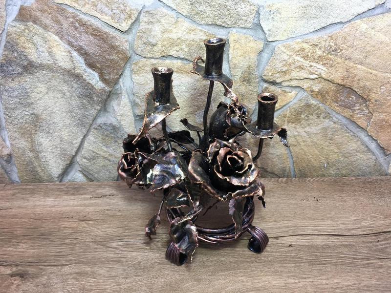 Кованый подсвечник с тремя розами