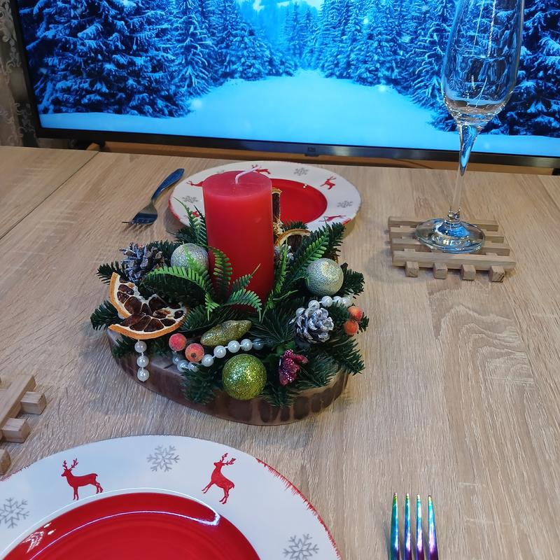 Новогодний декор на стол со свечей, композиция со свечей