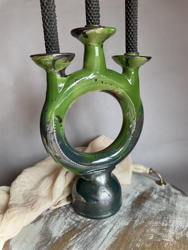 Яскравий керамічний свічник трійця стане чудовою прикрасою вашого інтер'єру. Деталі виготовлено на гончарному коліз глини, виліплено вручну. Підсвічник покритий якісною глазур'ю. Висота підсвічника 35 см, отвори для настільних свічок діаметром 1,5-2 см, отвір виконано у формі конуса. Форма свічника традиційна, дизайн мінімалістичний і вишуканий, це поєднання традицій і сучасного мінімалізму. Цей керамічний свічник може бути окремими акцентом чи доповненням до серії посуду Кожен свічник виготовлений вручну, тому може мати незначні відмінності у зовнішньому вигляді.