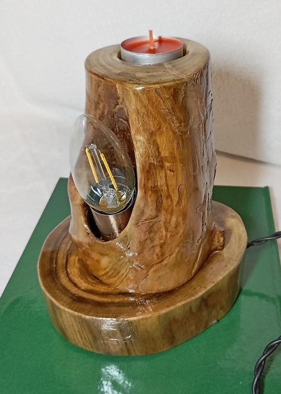 Новый светильник+подсвечник из древесины ореха. Очень компактный. Всего 19см в высоту и 14-15см в диаметре. Именно то, что нужно, к прикроватной тумбочке и при наличии и при отсутствии электроэнергии! 🙂 Сверхмягкий цвет древесины со следами действия жучков дает красивую, “художную” фактуру (все видно на фото).