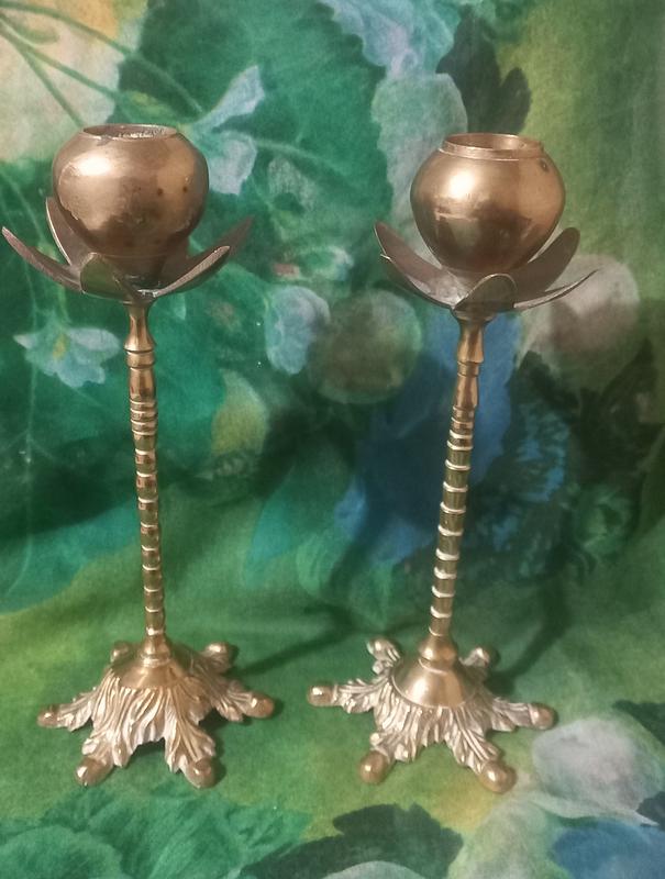 подсвечники "цветы" бронза или латунь. высота 21 см. на одном есть пятна см. последнее фото