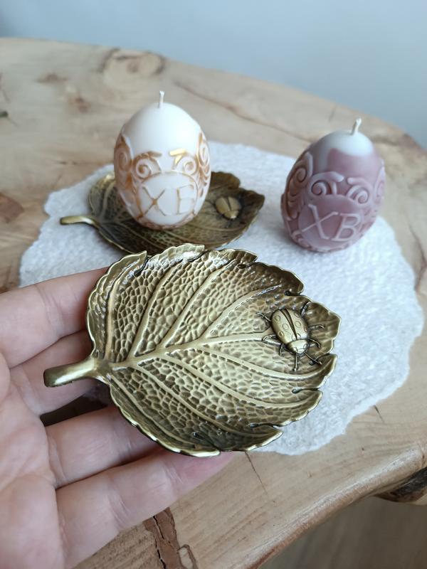Металлическая подставка для свечей "листок со божью коровкой". бронзовый подсвечник, 11×8...