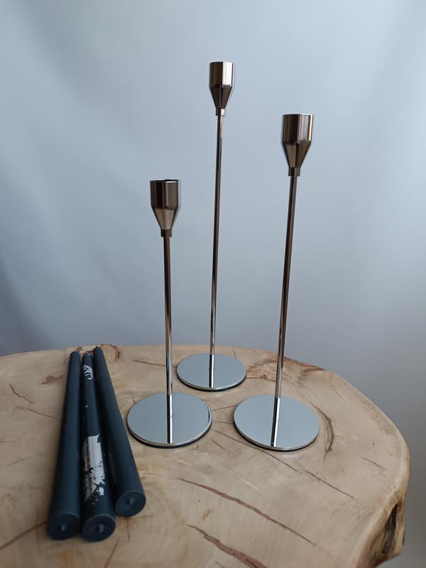 ✨ Стильный набор из 3-х серебряных металлических подсвечников – идеальное решение для изысканного декора! ✔ Разная высота для создания объемной композиции ✔ Лаконичный дизайн – подходят для любого интерьера ✔ Устойчивое тяжёлое основание – безопасное использование ✔ Подходят для классических свечей до 2.2 см в диаметре ✔ Возможность приобрести вместе с нашими графитовыми натуральными свечами 📏 Размеры подсвечников: 🔹 Самый высокий – 33 см 🔹 Диаметр основания - 8 см 🎁 Подходят для: ✔ Праздничной сервировки стола ✔ Веселенного декора ✔ Романтических вечеров ✔ Сканирование пространства светом 📦 Доставка по всей Украине! 💬 Напишите нам в чат – поможем с выбором свечей!