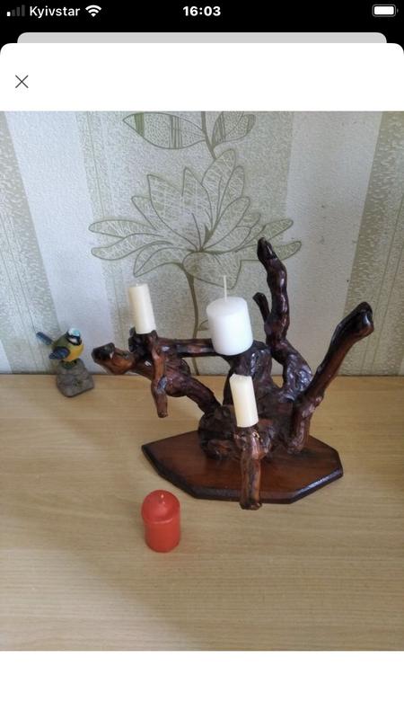 Стан дуже хороший З кореня, підставка дерево Розмір 27х25 см Міцний, виглядає добре Є тріщина, яку легко замазати