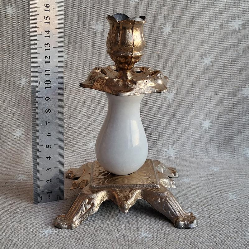 Подсвечник с фарфоровой вставкой. т2. Состояние хорошее, Высота 15,5см, по фото