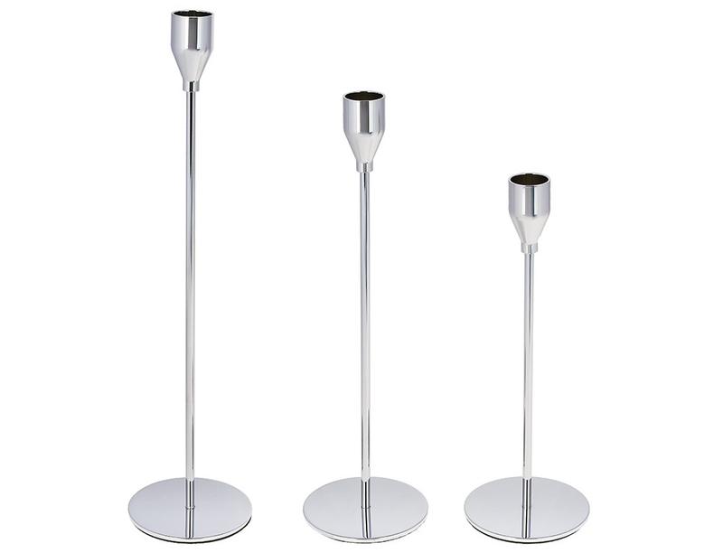 Набор свечей на высокой ножке, 3шт разной высоты, станет стильным акцентом в вашем интерьере. Изысканный металлический дизайн добавит особого настроения и уюта в любую комнату. Идеально подходит для романтических вечеров, праздничных событий или просто для создания комфортной атмосферы. В наборе три подсвечника: 8*21.5 см, 8*27 см, 8*32 см Материал - металл Цвет - серебряный