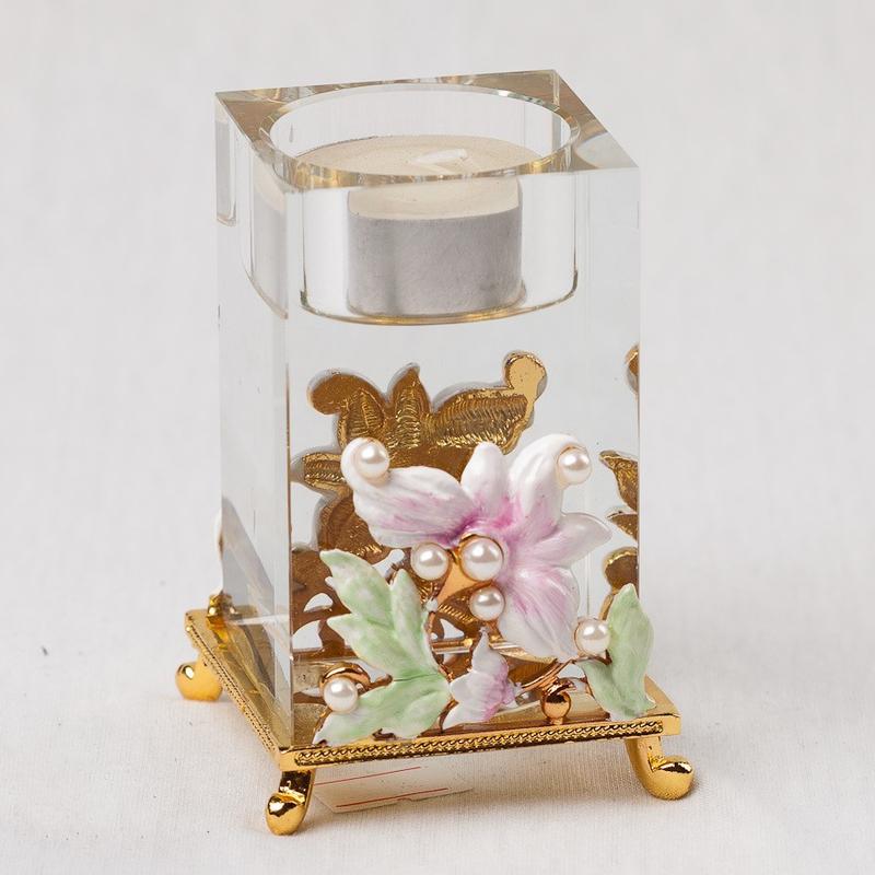 Подсвечник декоративный стекло с металлом Unicorn Studio Цветы 5х5х9 см 009MB размер 5х5х9 см материал- стекло,металл. фирма Unicorn Studio Невероятно нежный стеклянный подсвечник украшенный изящными металлическими цветами инкрустированными камешками подойдет на подарок маме, сестре, подруге.