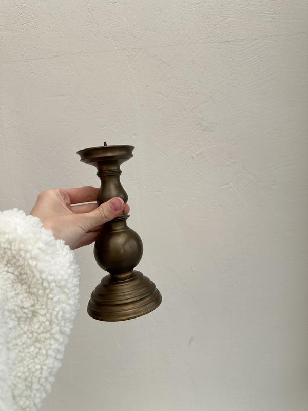 большой подсвечник из латуни, имеет вес, состояние хорошее, но есть несколько царапин, показано на фото. Высота 19 см, диаметр для свечи 6 см. Цена 480 грн.