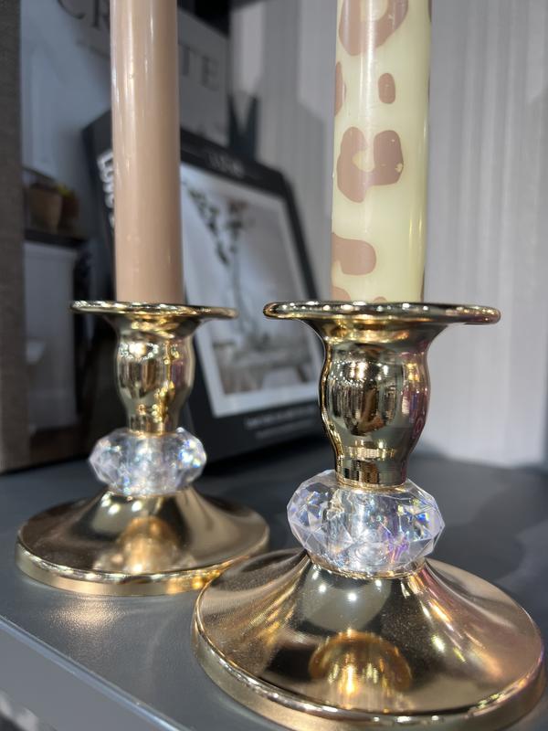 ✨ Елегантна пара свічників ✨ Додайте розкіш у свій дім! Стильні свічники у золотистому кольорі з кришталевим акцентом створять атмосферу тепла, затишку й вишуканості. Вони стануть чудовим доповненням до романтичної вечері, святкового столу або просто прикрасою вашого інтер’єру. 💎 Матеріал: метал + прозорий декоративний кристал 💡 Ідеально підходять для класичних та сучасних інтер’єрів 🎁 Гарний варіант подарунка