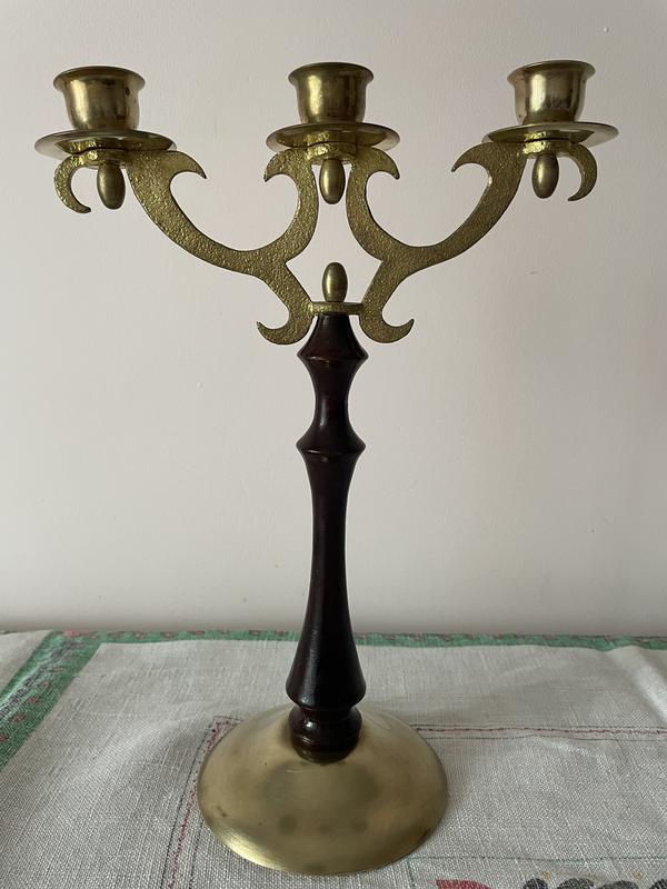 Підсвічник на три свічки в гарному стані латунь чи бронза сам тримач що тримає три свічки товщиною кілька міліметрів і загальна вага 700 грам При замовлені мінімальна передоплата за доставку а решта суми при отриманні на пошті бо було таке що не забрали посилку і я платив зворотню доставку