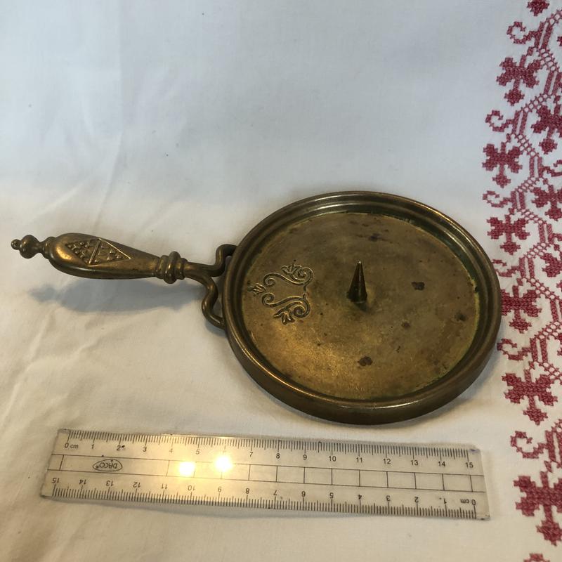 Підсвічник щ латуні вінтажний з Німеччини. Виготовлен як пательня. Є ручка для переносу. Розміри на фото. Стан гарний. Тяжкий якісний на одну свічку . Може бути підставою для дрібних речей.