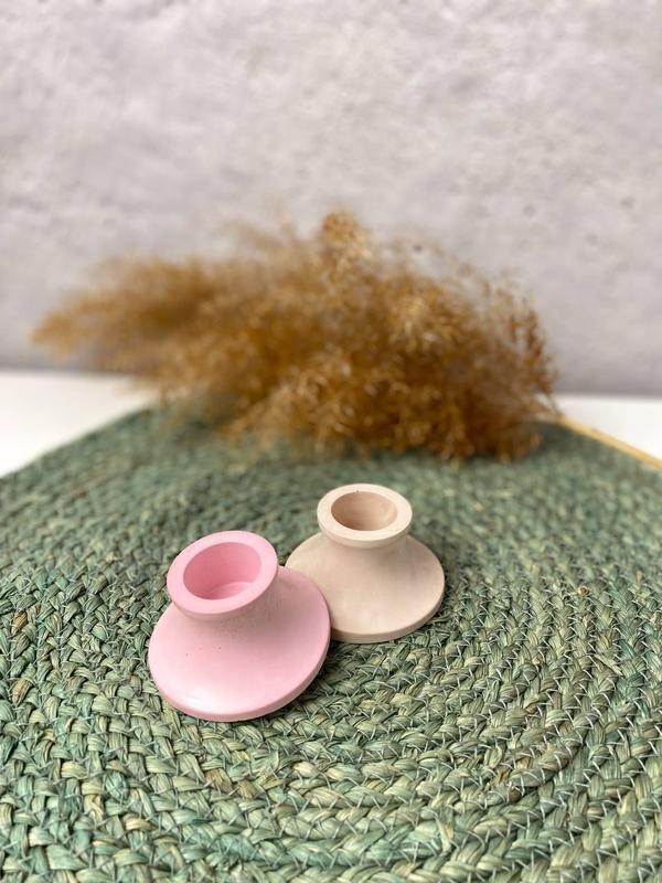 Набор декоративных подсвечников из гипса для столовых свечей 2шт розовый-беж