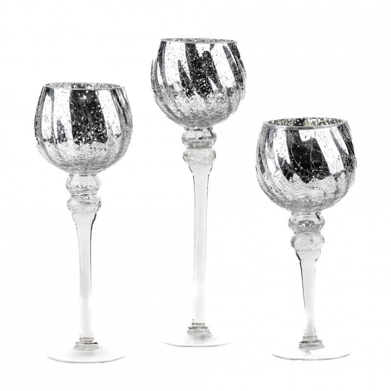 Набор подсвечников из 3-х штук 40 см,35 см,30 см Unicorn Studio 12006-010 материал - стекло Высота - 40 см, 35 см и 30 см. фирма Unicorn Studio Настольный набор подсвечников для декорирования включают в себя 3 практически идентичных аксессуара различной высоты: 40 см, 35 см, 30 см. Они могут использоваться не только совместно, но и по отдельности. Высокая, тонкая ножка делает свечные подставки изящными и компактными. Они кажутся почти невесомыми и не занимают много места. Благодаря играющему оттенку предметы выглядят очень нарядно и стильно. Такие подсвечники станут украшением праздничного стола на свадьбе, на званом ужине, на дне рождении и на тематическом празднике, например Новом году. Отличный товар для декораторов, ведь украсит и фотозону, и праздничный стол.