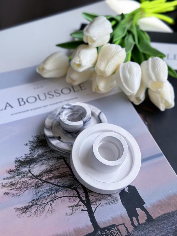 Набор декоративных подсвечников из гипса для столовых свечей 2шт мрамор-белый