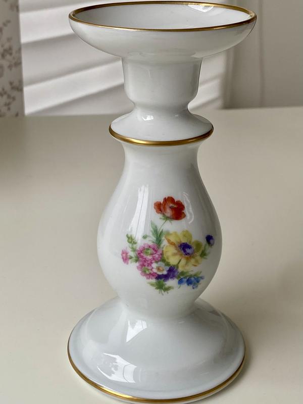 Свечанка от Lindner West Germany Фарфорная, ручная работа, позолота, клеймо, винтаж Высота 15 см, диаметр оновы 8 см, для свечи диаметром от 2 см Стан - идеальный Производитель: Lindner (Линднер) Особенность: Handarbeit (ручная работа) Период: W. Germany (Западная Германия), дающая изделие периодом между 1949 и 1990 годами. Название/Серия: Marie-Luise 21 Senator