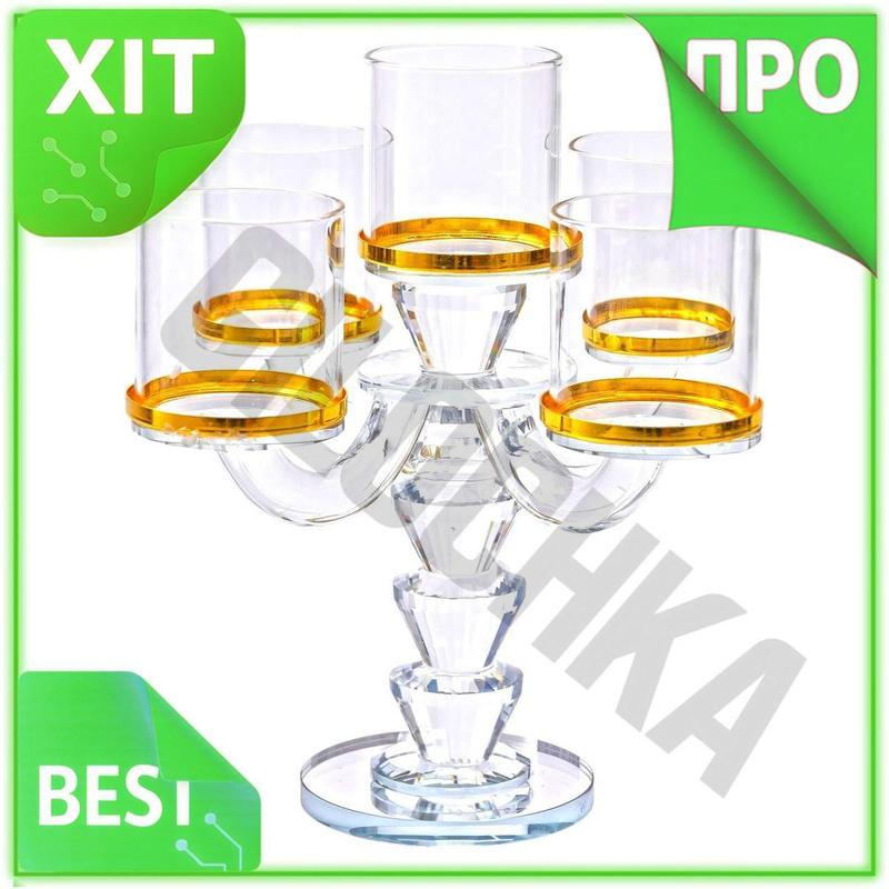 Ve канделябр на 5 свечей new version стеклянный декоративный с золотистой каймой для интер...