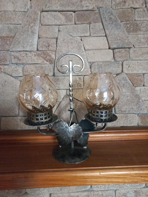 металлический подсвечник со стеклянными лампами, винтаж, производство Германия. Высота 24 см, ширина 22 см, диаметр низу9,5 см, высота лампадок 10 см, подойдет для свечи диаметром до 5 см.