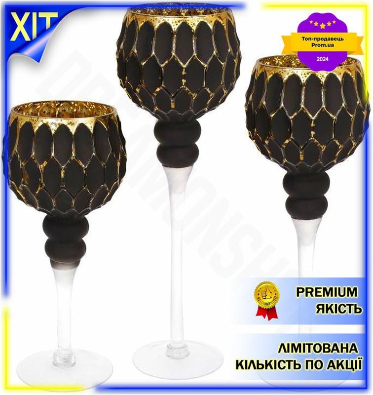Dm набор стеклянных подсвечников спецификация 2.2 ferdeus 3 штуки черные с золотом для дек...