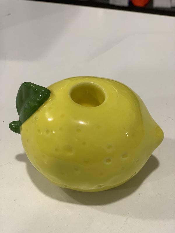 Керамічні свічники у формі лимонів та кавунів , також можуть продаватися як маленькі вази або декоративні фігурки. Вони мають яскравий жовтий колір із зеленим листям і отвір зверху для розміщення свічки або невеликої квіткової композиції. Деталі продукту Матеріал: Виготовлені з кераміки або порцеляни, часто мають глянцеве глазуроване покриття. Призначення: Можуть використовуватися як свічники для вузьких свічок або свічок-таблеток, або як декоративні елементи інтер'єру для створення літньої атмосфери. Дизайн: Реалістичний, стилізований під лимон, з текстурою шкірки та невеликим зеленим листком біля основи отвору.