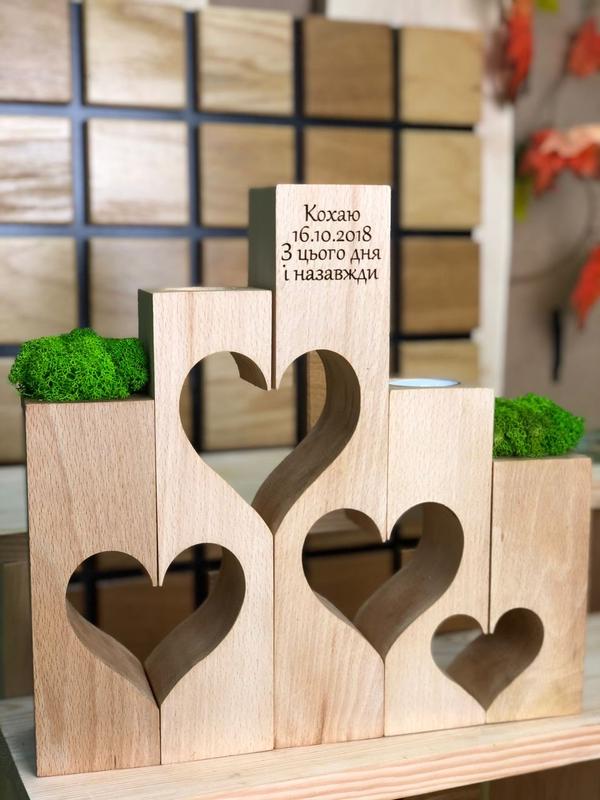 Підсвічник з стабілізованим мохом, із 5 деталей, колір моху та дерева на ваш вибір Також можливо будь яке гравіювання Виробів є багато пишіть, все Вам скину і покажу 😉