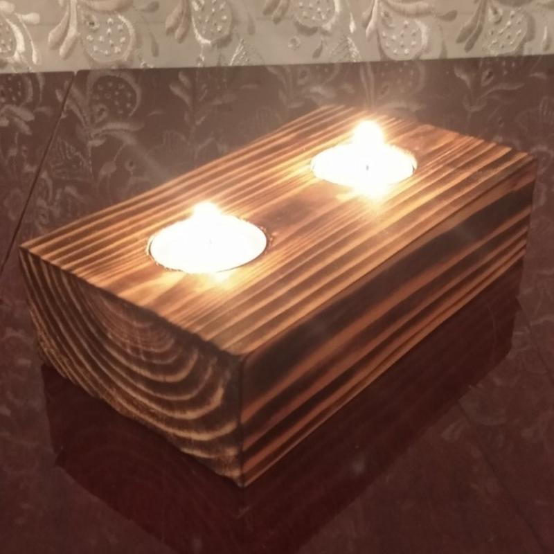 Ручной работы деревянный подсвечник для двух свечей.