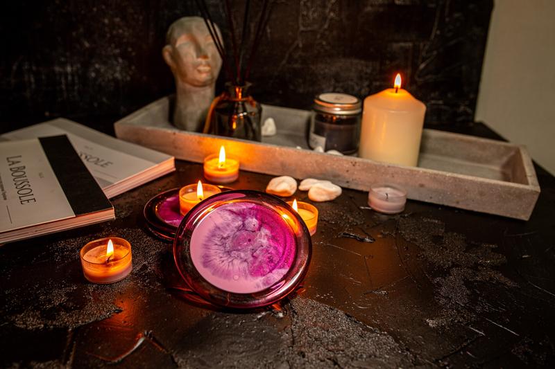 Набір підсвічників зі скла з епоксидною смолою, ручна робота
